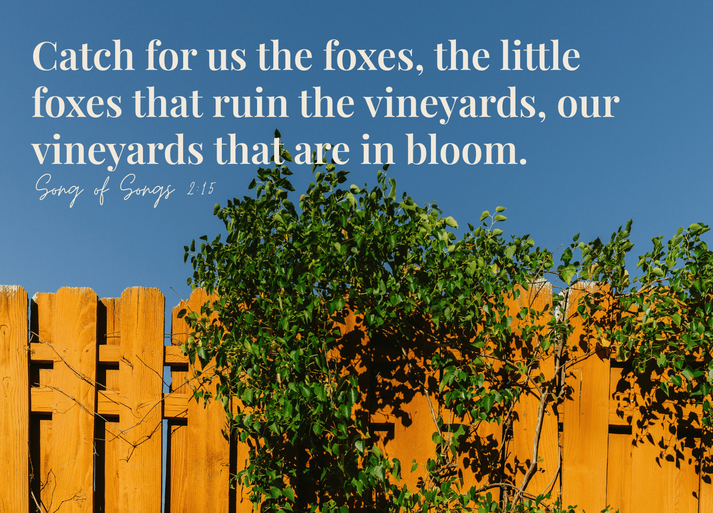 This also came to mind, “Catch for us the foxes, the little foxes that ruin the vineyards, our vineyards that are in bloom” (Song of Songs 2:15 NIV). Along with gently pointing out that my social media scrolling and dangerous daydreaming were not helpful, I love that He also encouraged me by highlighting two words in this verse: “in bloom.”