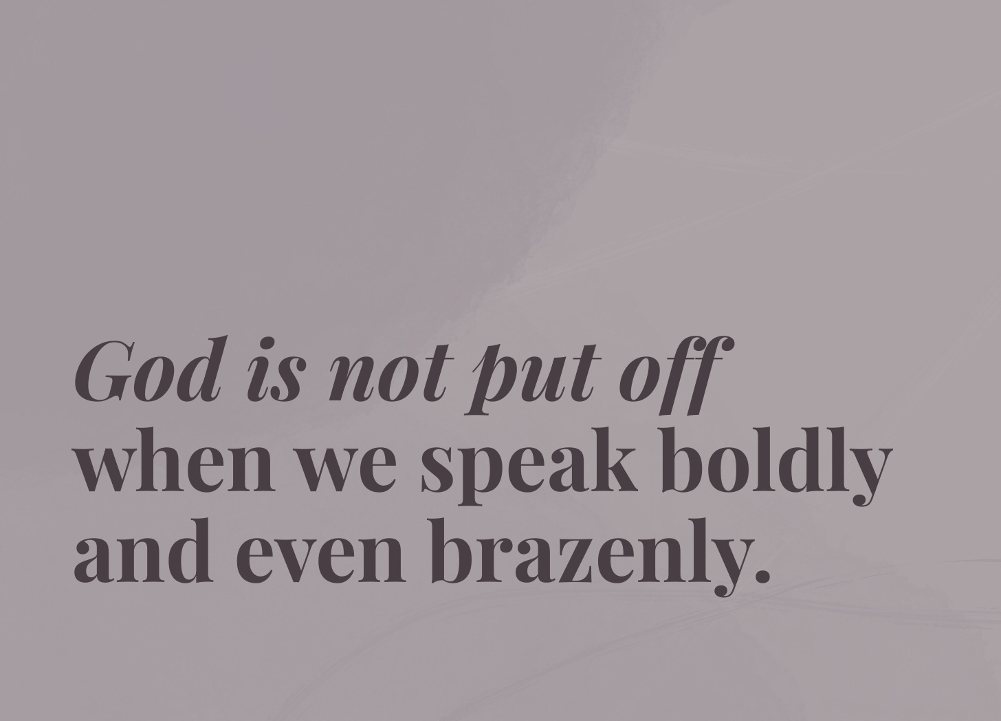 God is not put off when we speak boldly and even brazenly. In fact, He seems to be inviting us to do just that. Yes, it’s important to be humble before God and to submit our will to His. Yes, there are times when we wait on God in silence. Yet here we see that there are also times when we can speak strongly, boldly, and brazenly. Just look at the way the psalmist spoke to God, “Awake, Lord! Why do you sleep? Rouse yourself! Do not reject us forever” (Psalm 44:23 NIV).